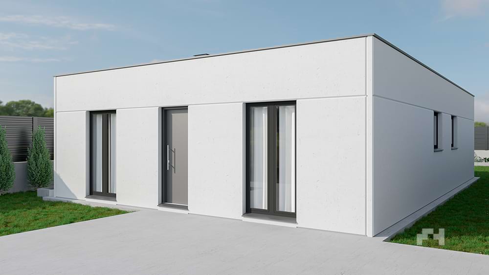 Vivienda modular MH de 90m2 que consta de un salón-cocina diáfano, 3 dormitorios y 2 baños